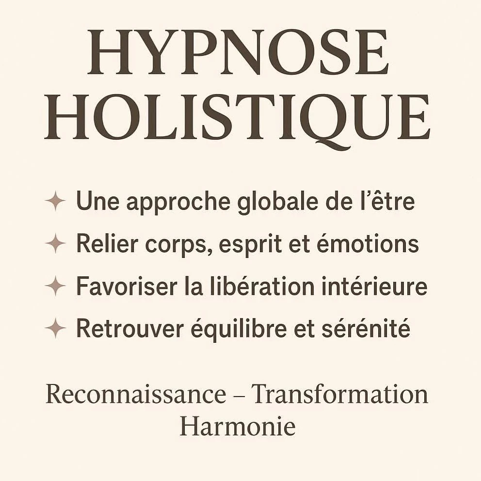 -L’hypnose holistique est quand à elle une merveilleuse façon d’explorer et d’embellir votre vie. C’est une porte d’entrée pour accéder à votre inconscient, entre l’éveil et le sommeil. Malgré les idées reçues, en état d’hypnose vous êtes toujours en plein contrôle, vous vous laissez guider par ma voix et vous pouvez me répondre. J’aime préciser qu’avec l’inconscient vous avez le pouvoir extraordinaire de transformer et d’améliorer votre qualité de vie.