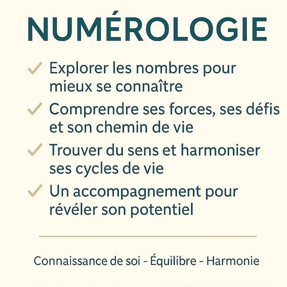 Je pratique également la Numérologie : si vous ressentez un besoin de sens, de compréhension ou d'orientation, la numérologie peut être un magnifique point de départ.